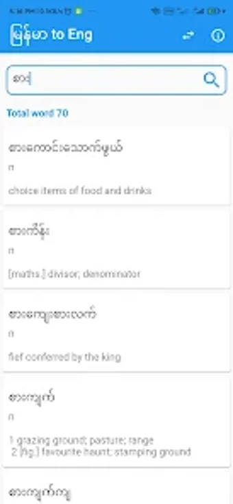 يوفر قاموس ميانمار حلا بسيطًا وفعالًا لاحتياجات ترجمة اللغات أثناء التنقل. بفضل ميزاته البسيطة وتصميمه الخفيف، يلبي هذا التطبيق احتياجات المستخدمين الذين يبحثون عن أداة موثوقة لتعزيز التواصل بين اللغتين الإنجليزية والميانمارية.